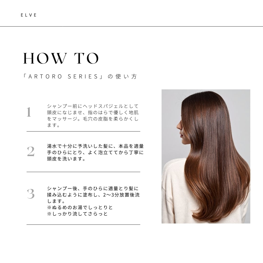 湯水で十分に予洗いした髪に、本品を適量手のひらにとり、よく泡立ててから丁寧に頭皮を洗います。